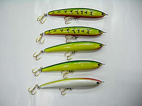 ペンシルのように動き、ポッパーの機能を備えた欲張りルアー。 | |